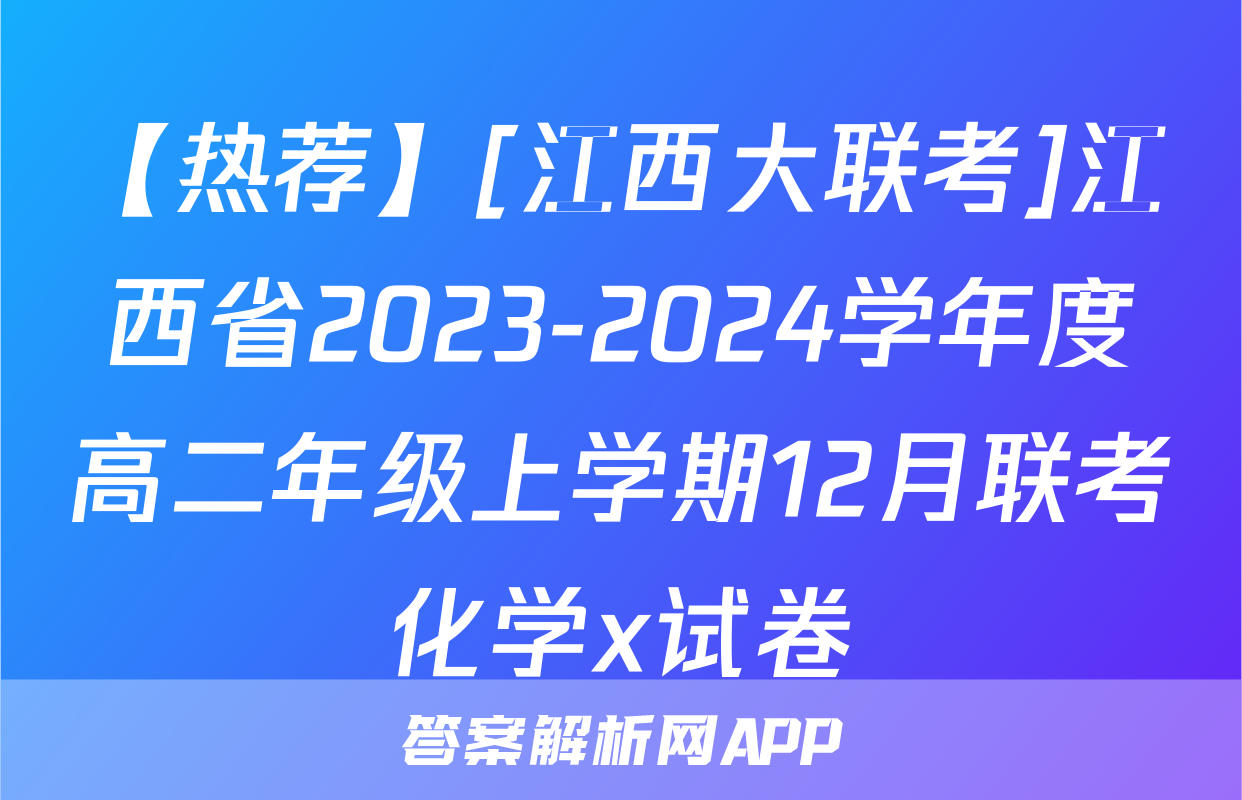 【热荐】[江西大联考]江西省2023-2024学年度高二年级上学期12月联考化学x试卷,目前2024卷临天下答案网已经汇总了【热荐】[江西大联考]江西省2023-2024学年度高二年级上学期12月联考化学x试卷的各科答案和试卷,获取更多{{papers_name}}答案解析,请在关注本站。