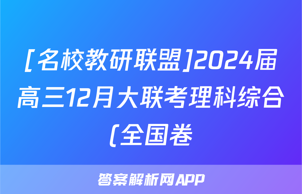 [名校教研联盟]2024届高三12月大联考理科综合(全国卷)答案,目前2024卷临天下答案网已经汇总了[名校教研联盟]2024届高三12月大联考理科综合(全国卷)答案的各科答案和试卷,获取更多{{papers_name}}答案解析,请在关注本站。