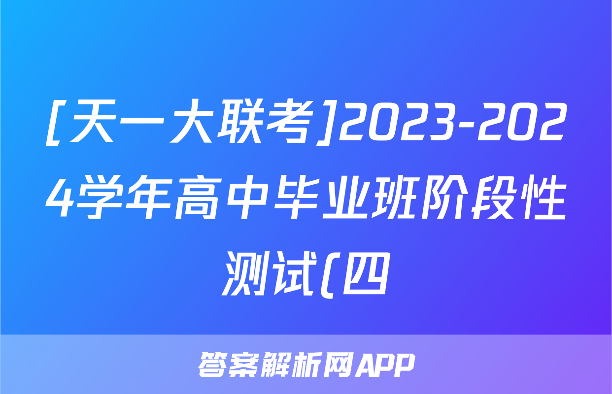 [天一大联考]2023-2024学年高中毕业班阶段性测试(四)4理科数学(老教材版)答案,目前2024卷临天下答案网已经汇总了[天一大联考]2023-2024学年高中毕业班阶段性测试(四)4理科数学(老教材版)答案的各科答案和试卷,获取更多{{papers_name}}答案解析,请在关注本站。