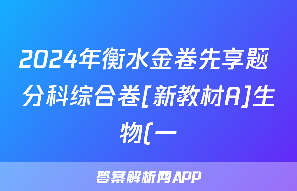 2024年衡水金卷先享题 分科综合卷[新教材A]生物(一)1答案,目前2024卷临天下答案网已经汇总了2024年衡水金卷先享题 分科综合卷[新教材A]生物(一)1答案的各科答案和试卷,获取更多{{papers_name}}答案解析,请在关注本站。