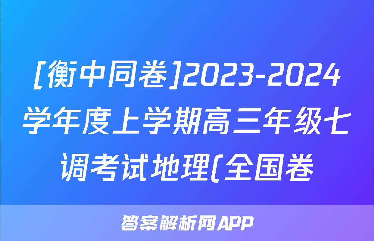 [衡中同卷]2023-2024学年度上学期高三年级七调考试地理(全国卷)答案,目前2024卷临天下答案网已经汇总了[衡中同卷]2023-2024学年度上学期高三年级七调考试地理(全国卷)答案的各科答案和试卷,获取更多{{papers_name}}答案解析,请在关注本站。