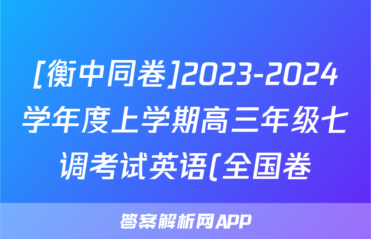 [衡中同卷]2023-2024学年度上学期高三年级七调考试英语(全国卷)试题,目前2024卷临天下答案网已经汇总了[衡中同卷]2023-2024学年度上学期高三年级七调考试英语(全国卷)试题的各科答案和试卷,获取更多{{papers_name}}答案解析,请在关注本站。