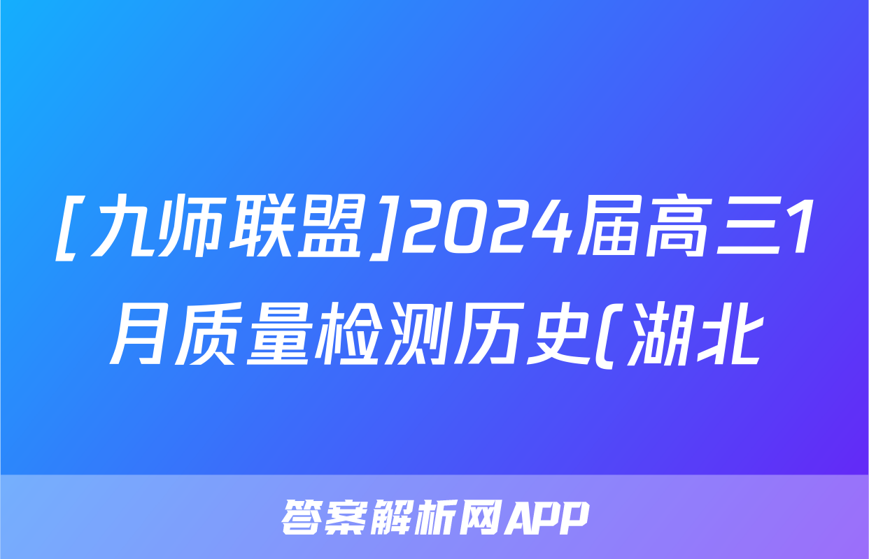 [九师联盟]2024届高三1月质量检测历史(湖北)试题,目前2024卷临天下答案网已经汇总了[九师联盟]2024届高三1月质量检测历史(湖北)试题的各科答案和试卷,获取更多{{papers_name}}答案解析,请在关注本站。