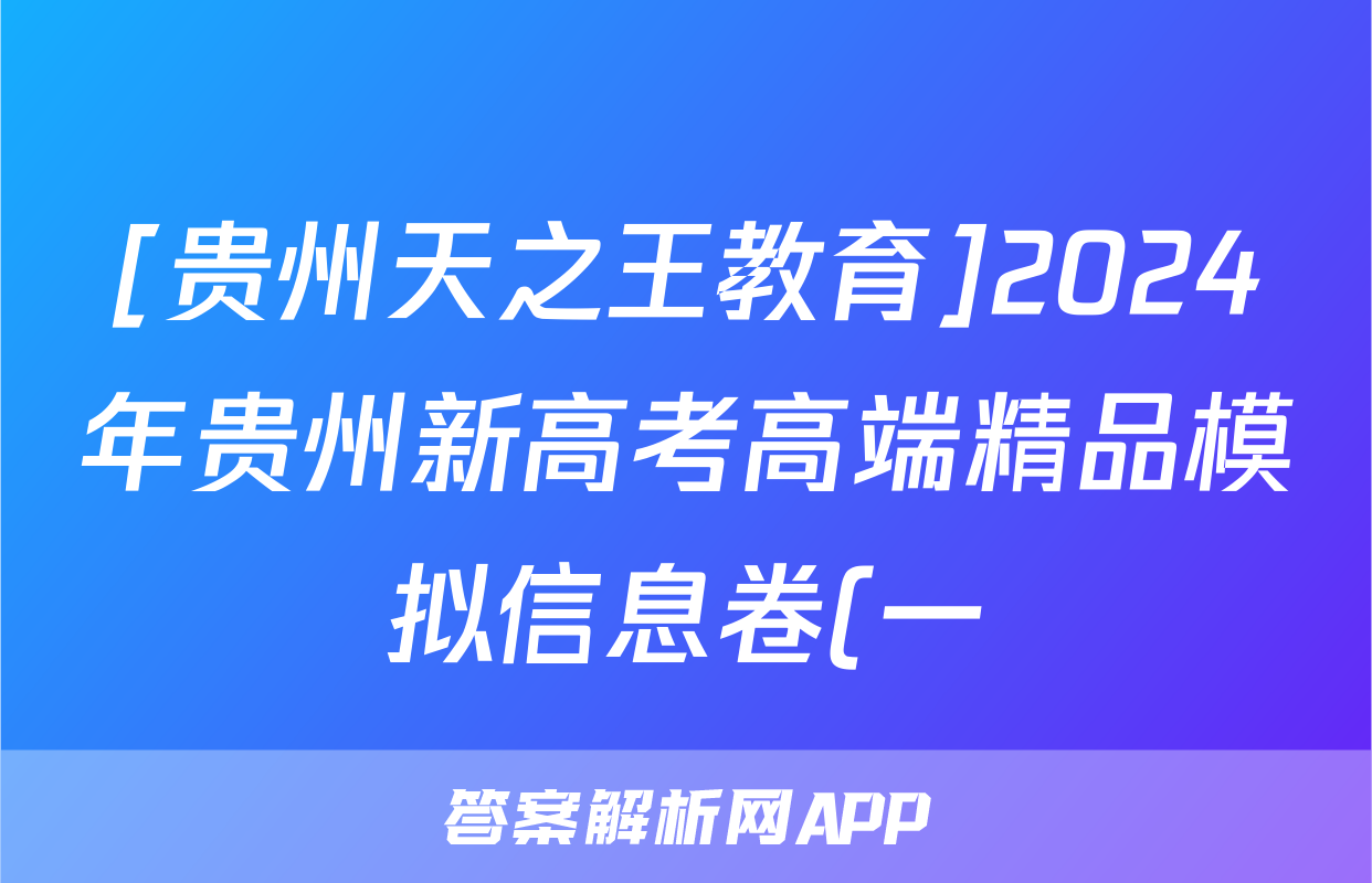 [贵州天之王教育]2024年贵州新高考高端精品模拟信息卷(一)1生物试题,目前2024卷临天下答案网已经汇总了[贵州天之王教育]2024年贵州新高考高端精品模拟信息卷(一)1生物试题的各科答案和试卷,获取更多{{papers_name}}答案解析,请在关注本站。