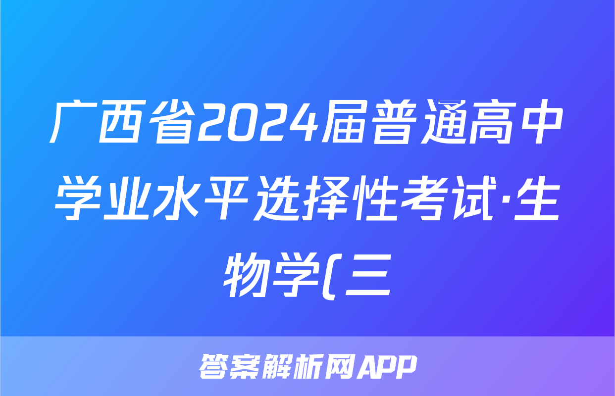 广西省2024届普通高中学业水平选择性考试·生物学(三)3[24·(新高考)ZX·MNJ·生物学·GX]试题,目前2024卷临天下答案网已经汇总了广西省2024届普通高中学业水平选择性考试·生物学(三)3[24·(新高考)ZX·MNJ·生物学·GX]试题的各科答案和试卷,获取更多{{papers_name}}答案解析,请在关注本站。