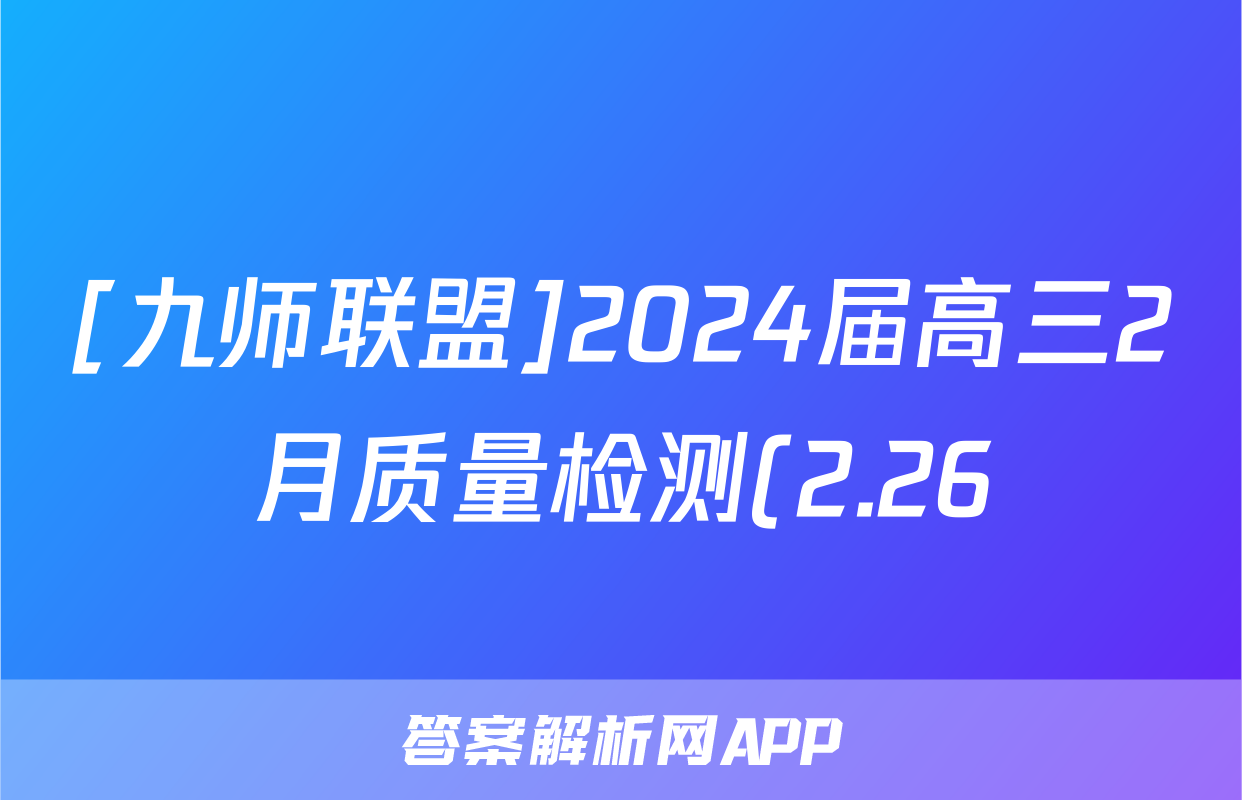 9、2023-2024九师联盟高三二月质量检测理综答案