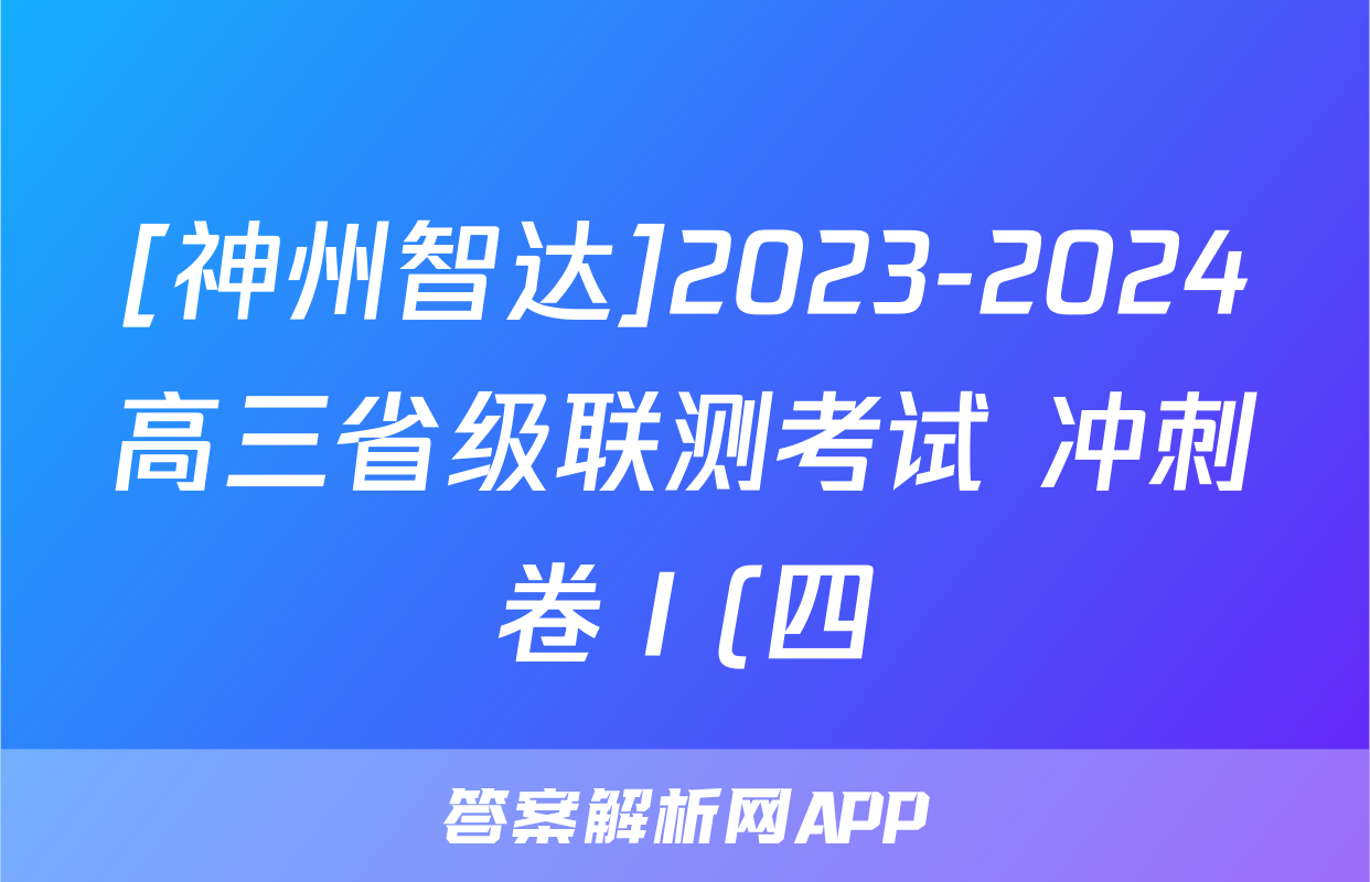 [神州智达]2023-2024高三省级联测考试 冲刺卷Ⅰ(四)4语文试题,目前2024卷临天下答案网已经汇总了[神州智达]2023-2024高三省级联测考试 冲刺卷Ⅰ(四)4语文试题的各科答案和试卷,获取更多{{papers_name}}答案解析,请在关注本站。