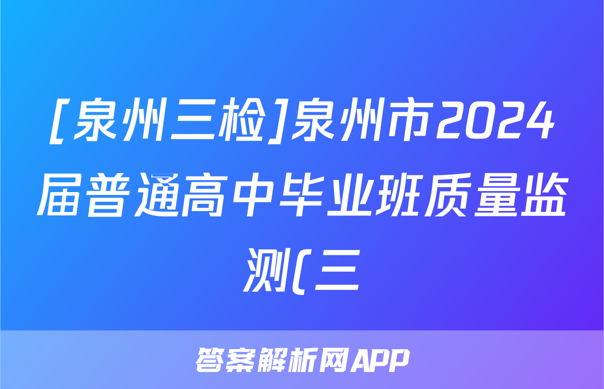 [泉州三检]泉州市2024届普通高中毕业班质量监测(三)生物答案,目前2024卷临天下答案网已经汇总了[泉州三检]泉州市2024届普通高中毕业班质量监测(三)生物答案的各科答案和试卷,获取更多{{papers_name}}答案解析,请在关注本站。