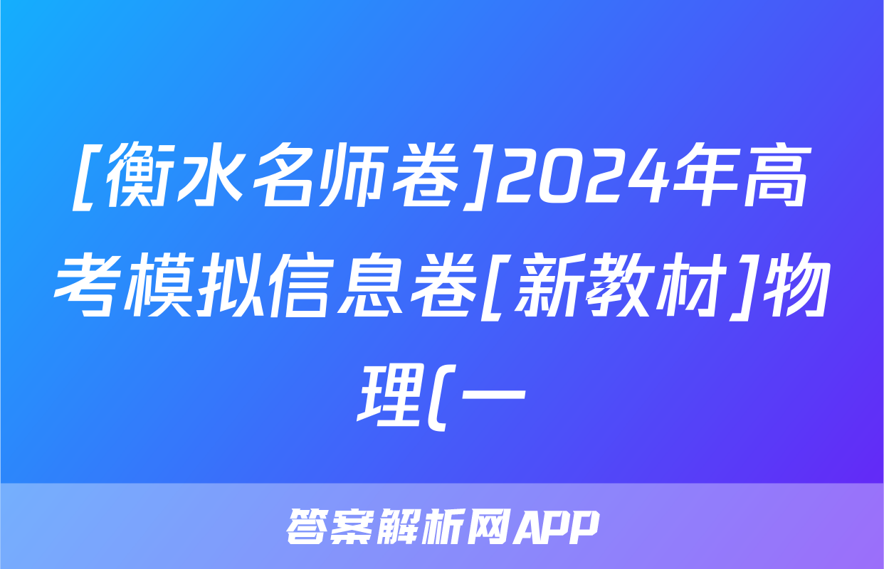 [衡水名师卷]2024年高考模拟信息卷[新教材]物理(一)1试题,目前2024卷临天下答案网已经汇总了[衡水名师卷]2024年高考模拟信息卷[新教材]物理(一)1试题的各科答案和试卷,获取更多{{papers_name}}答案解析,请在关注本站。