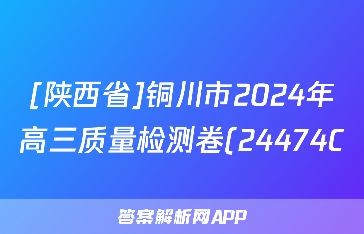 1、[陕西省]铜川市2024年高三质量检测卷(24474C)理科综合试题