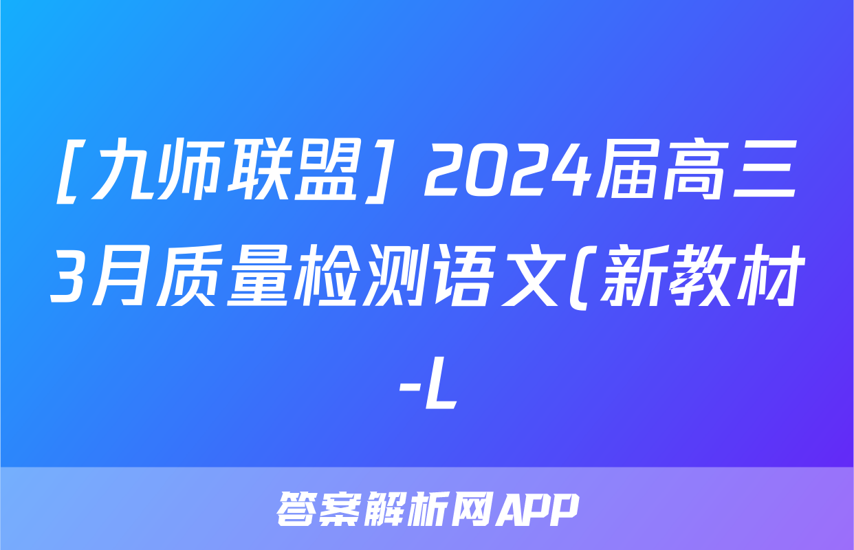[九师联盟] 2024届高三3月质量检测语文(新教材-L)试题,目前2024卷临天下答案网已经汇总了[九师联盟] 2024届高三3月质量检测语文(新教材-L)试题的各科答案和试卷,获取更多{{papers_name}}答案解析,请在关注本站。