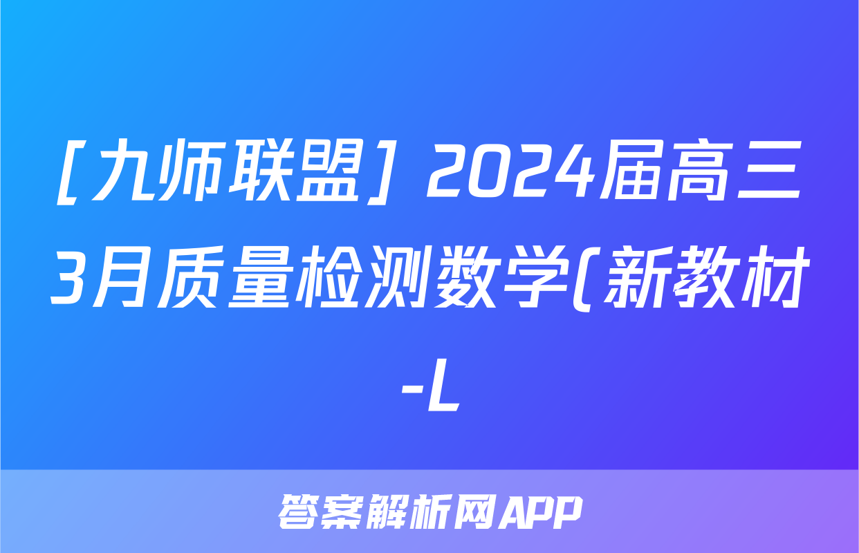 [九师联盟] 2024届高三3月质量检测数学(新教材-L)试题,目前2024卷临天下答案网已经汇总了[九师联盟] 2024届高三3月质量检测数学(新教材-L)试题的各科答案和试卷,获取更多{{papers_name}}答案解析,请在关注本站。