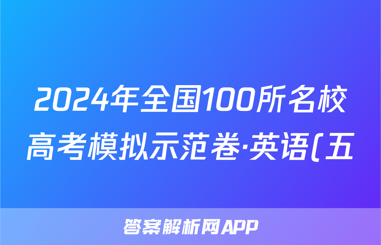 2024年全国100所名校高考模拟示范卷·英语(五)5[24新教材老高考·ZX·MNJ·英语·N]试题,目前2024卷临天下答案网已经汇总了2024年全国100所名校高考模拟示范卷·英语(五)5[24新教材老高考·ZX·MNJ·英语·N]试题的各科答案和试卷,获取更多{{papers_name}}答案解析,请在关注本站。