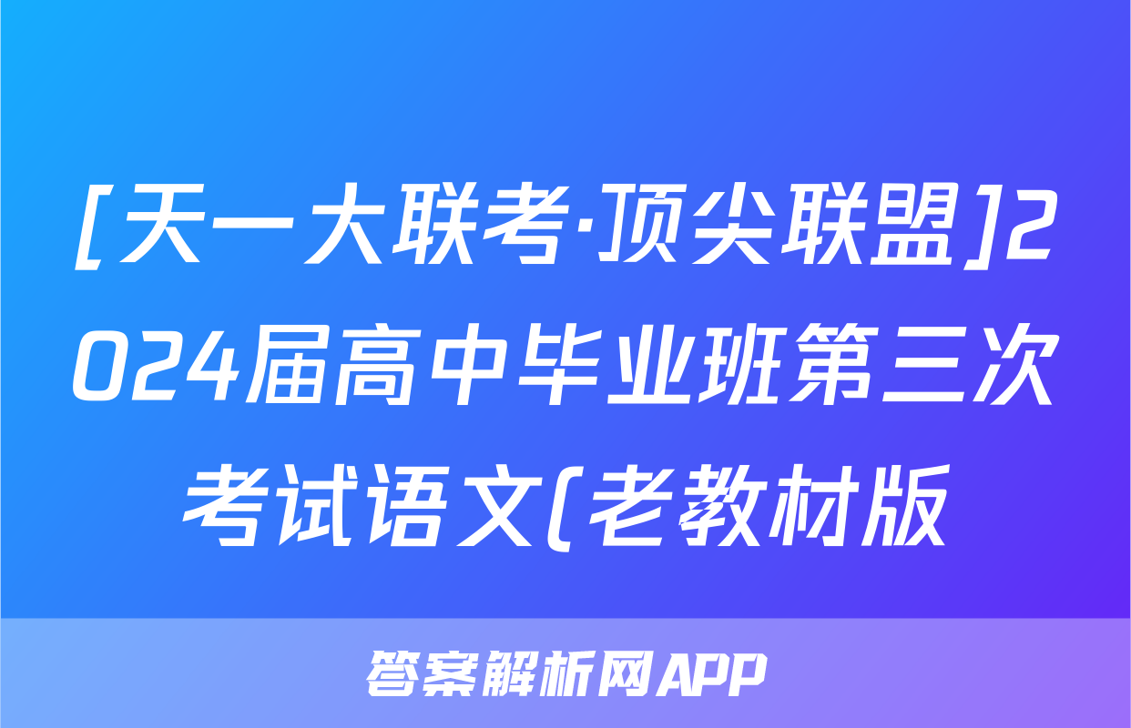 [天一大联考·顶尖联盟]2024届高中毕业班第三次考试语文(老教材版)答案,目前2024卷临天下答案网已经汇总了[天一大联考·顶尖联盟]2024届高中毕业班第三次考试语文(老教材版)答案的各科答案和试卷,获取更多{{papers_name}}答案解析,请在关注本站。
