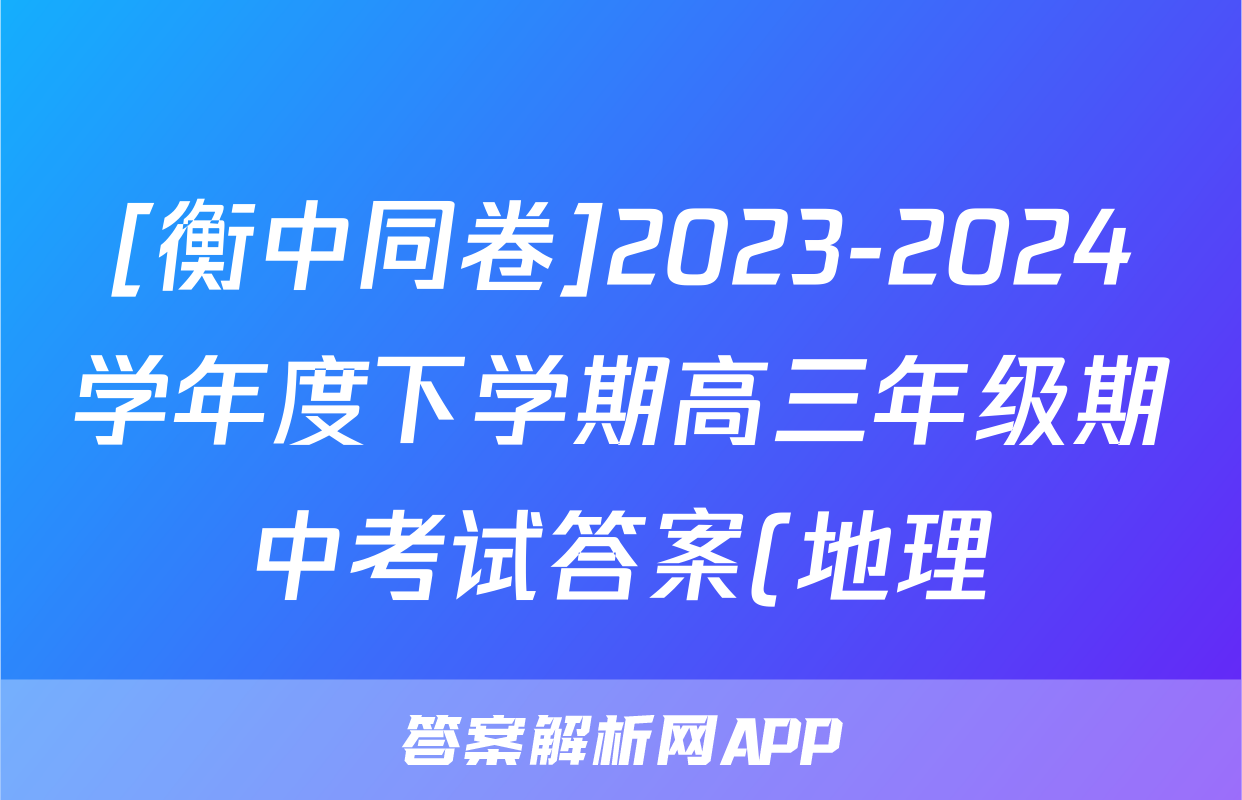 [衡中同卷]2023-2024学年度下学期高三年级期中考试答案(地理),目前2024卷临天下答案网已经汇总了[衡中同卷]2023-2024学年度下学期高三年级期中考试答案(地理)的各科答案和试卷,获取更多{{papers_name}}答案解析,请在关注本站。