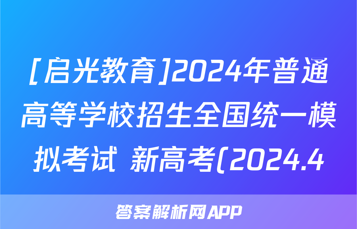 [启光教育]2024年普通高等学校招生全国统一模拟考试 新高考(2024.4)答案(英语),目前2024卷临天下答案网已经汇总了[启光教育]2024年普通高等学校招生全国统一模拟考试 新高考(2024.4)答案(英语)的各科答案和试卷,获取更多{{papers_name}}答案解析,请在关注本站。