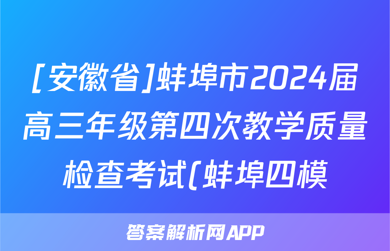 [安徽省]蚌埠市2024届高三年级第四次教学质量检查考试(蚌埠四模)答案(物理),目前2024卷临天下答案网已经汇总了[安徽省]蚌埠市2024届高三年级第四次教学质量检查考试(蚌埠四模)答案(物理)的各科答案和试卷,获取更多{{papers_name}}答案解析,请在关注本站。
