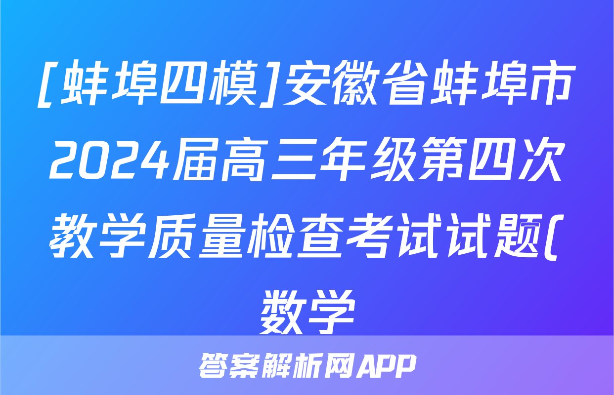 [蚌埠四模]安徽省蚌埠市2024届高三年级第四次教学质量检查考试试题(数学),目前2024卷临天下答案网已经汇总了[蚌埠四模]安徽省蚌埠市2024届高三年级第四次教学质量检查考试试题(数学)的各科答案和试卷,获取更多{{papers_name}}答案解析,请在关注本站。