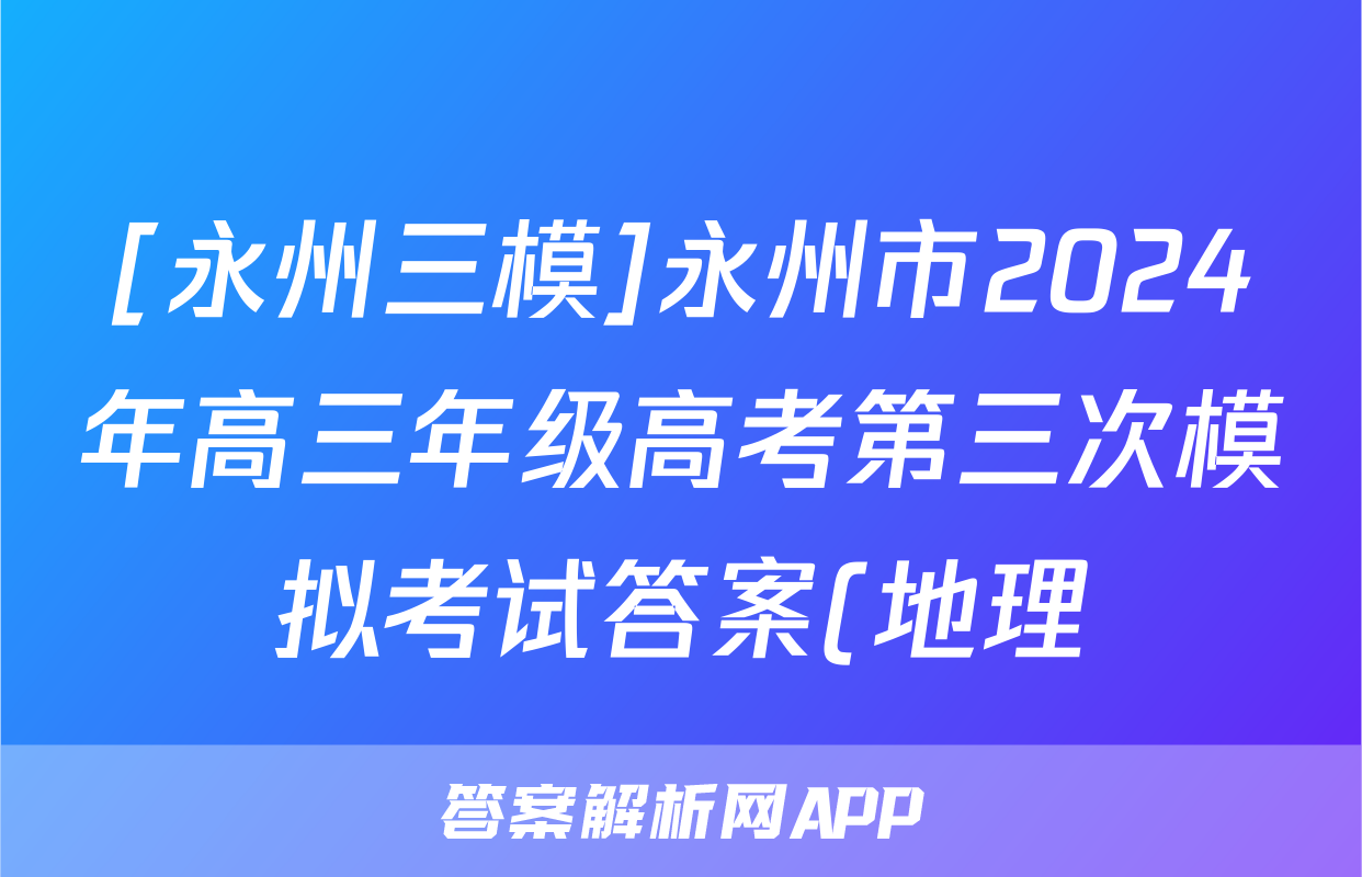 [永州三模]永州市2024年高三年级高考第三次模拟考试答案(地理),目前2024卷临天下答案网已经汇总了[永州三模]永州市2024年高三年级高考第三次模拟考试答案(地理)的各科答案和试卷,获取更多{{papers_name}}答案解析,请在关注本站。