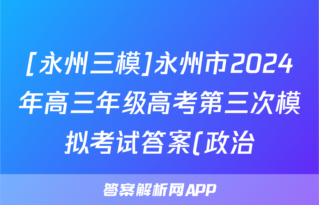 [永州三模]永州市2024年高三年级高考第三次模拟考试答案(政治),目前2024卷临天下答案网已经汇总了[永州三模]永州市2024年高三年级高考第三次模拟考试答案(政治)的各科答案和试卷,获取更多{{papers_name}}答案解析,请在关注本站。