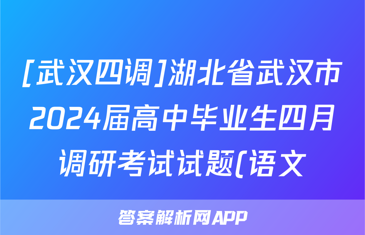 [武汉四调]湖北省武汉市2024届高中毕业生四月调研考试试题(语文),目前2024卷临天下答案网已经汇总了[武汉四调]湖北省武汉市2024届高中毕业生四月调研考试试题(语文)的各科答案和试卷,获取更多{{papers_name}}答案解析,请在关注本站。