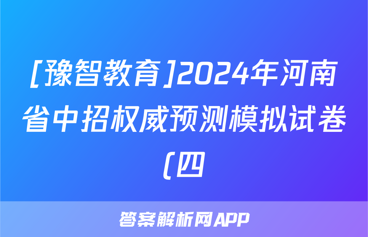 [豫智教育]2024年河南省中招权威预测模拟试卷(四)4语文答案,目前2024卷临天下答案网已经汇总了[豫智教育]2024年河南省中招权威预测模拟试卷(四)4语文答案的各科答案和试卷,获取更多{{papers_name}}答案解析,请在关注本站。