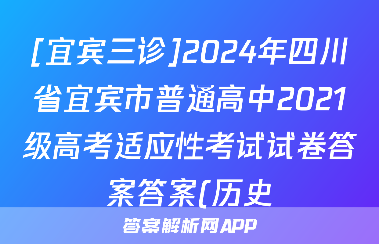 [宜宾三诊]2024年四川省宜宾市普通高中2021级高考适应性考试试卷答案答案(历史),目前2024卷临天下答案网已经汇总了[宜宾三诊]2024年四川省宜宾市普通高中2021级高考适应性考试试卷答案答案(历史)的各科答案和试卷,获取更多{{papers_name}}答案解析,请在关注本站。