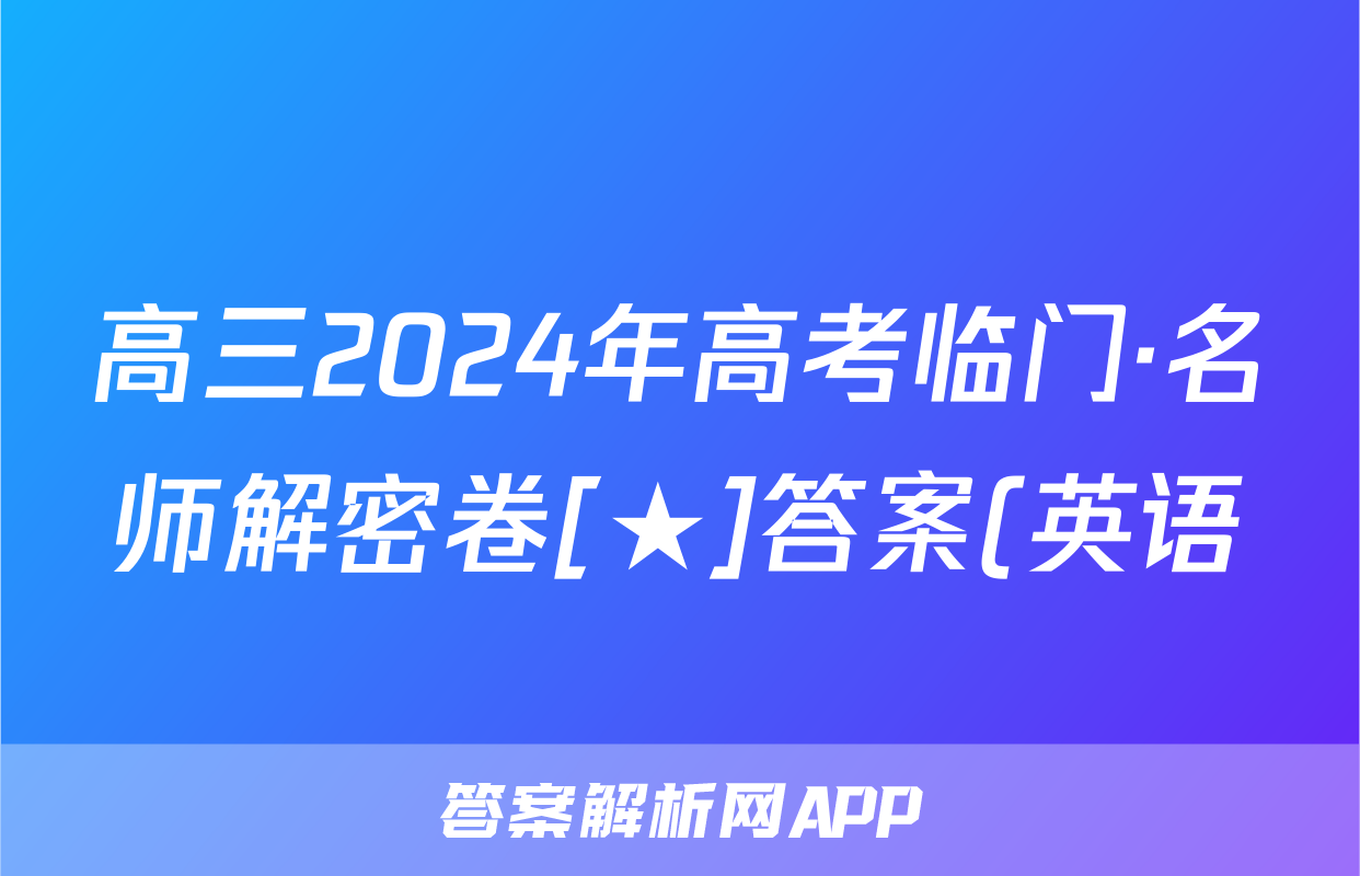 高三2024年高考临门·名师解密卷[★]答案(英语),目前2024卷临天下答案网已经汇总了高三2024年高考临门·名师解密卷[★]答案(英语)的各科答案和试卷,获取更多{{papers_name}}答案解析,请在关注本站。