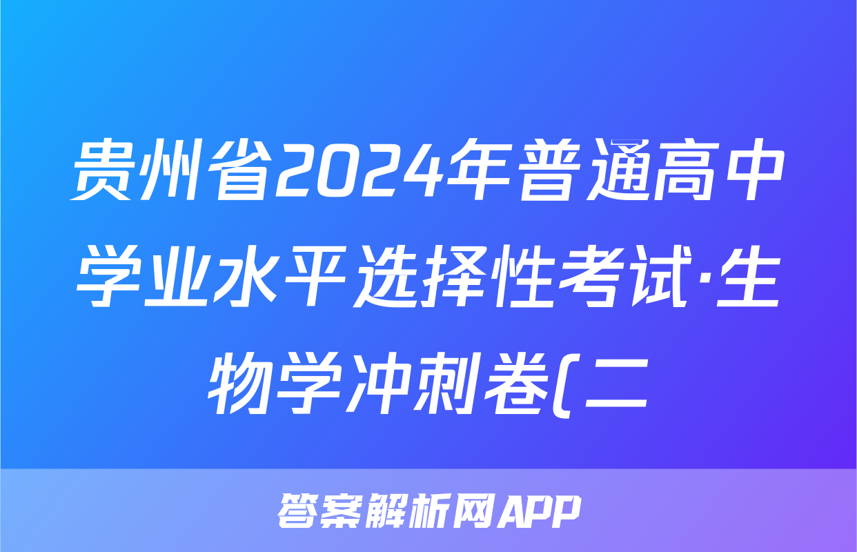 贵州省2024年普通高中学业水平选择性考试·生物学冲刺卷(二)2[24·(新高考)CCJ·生物学·GZ]试题,目前2024卷临天下答案网已经汇总了贵州省2024年普通高中学业水平选择性考试·生物学冲刺卷(二)2[24·(新高考)CCJ·生物学·GZ]试题的各科答案和试卷,获取更多{{papers_name}}答案解析,请在关注本站。