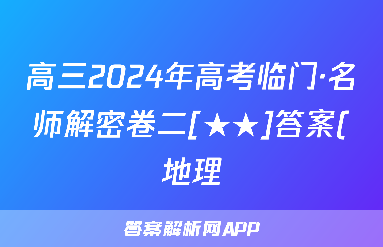 高三2024年高考临门·名师解密卷二[★★]答案(地理),目前2024卷临天下答案网已经汇总了高三2024年高考临门·名师解密卷二[★★]答案(地理)的各科答案和试卷,获取更多{{papers_name}}答案解析,请在关注本站。