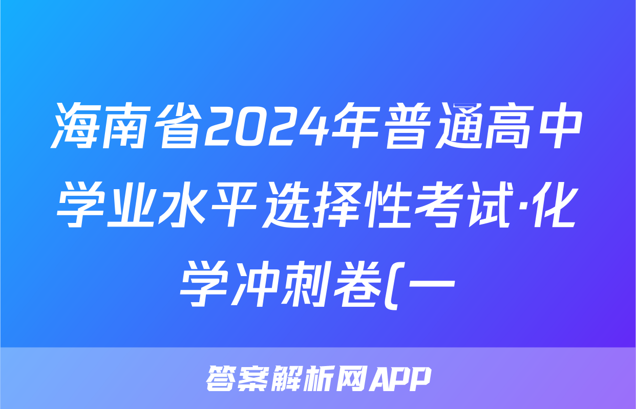 海南省2024年普通高中学业水平选择性考试·化学冲刺卷(一)1[24·(新高考)CCJ·化学·HAIN]答案,目前2024卷临天下答案网已经汇总了海南省2024年普通高中学业水平选择性考试·化学冲刺卷(一)1[24·(新高考)CCJ·化学·HAIN]答案的各科答案和试卷,获取更多{{papers_name}}答案解析,请在关注本站。