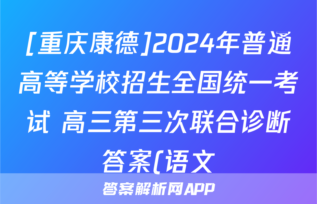 [重庆康德]2024年普通高等学校招生全国统一考试 高三第三次联合诊断答案(语文),目前2024卷临天下答案网已经汇总了[重庆康德]2024年普通高等学校招生全国统一考试 高三第三次联合诊断答案(语文)的各科答案和试卷,获取更多{{papers_name}}答案解析,请在关注本站。