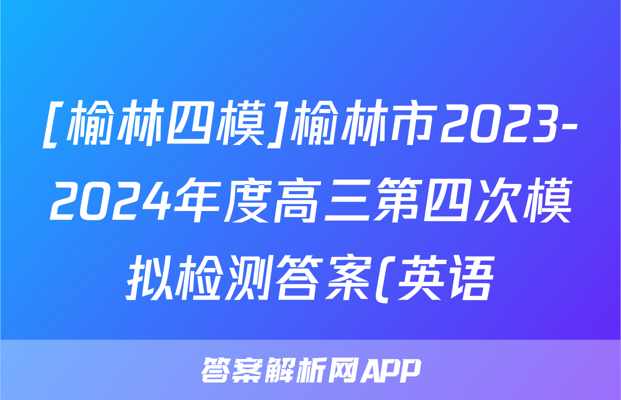 [榆林四模]榆林市2023-2024年度高三第四次模拟检测答案(英语),目前2024卷临天下答案网已经汇总了[榆林四模]榆林市2023-2024年度高三第四次模拟检测答案(英语)的各科答案和试卷,获取更多{{papers_name}}答案解析,请在关注本站。