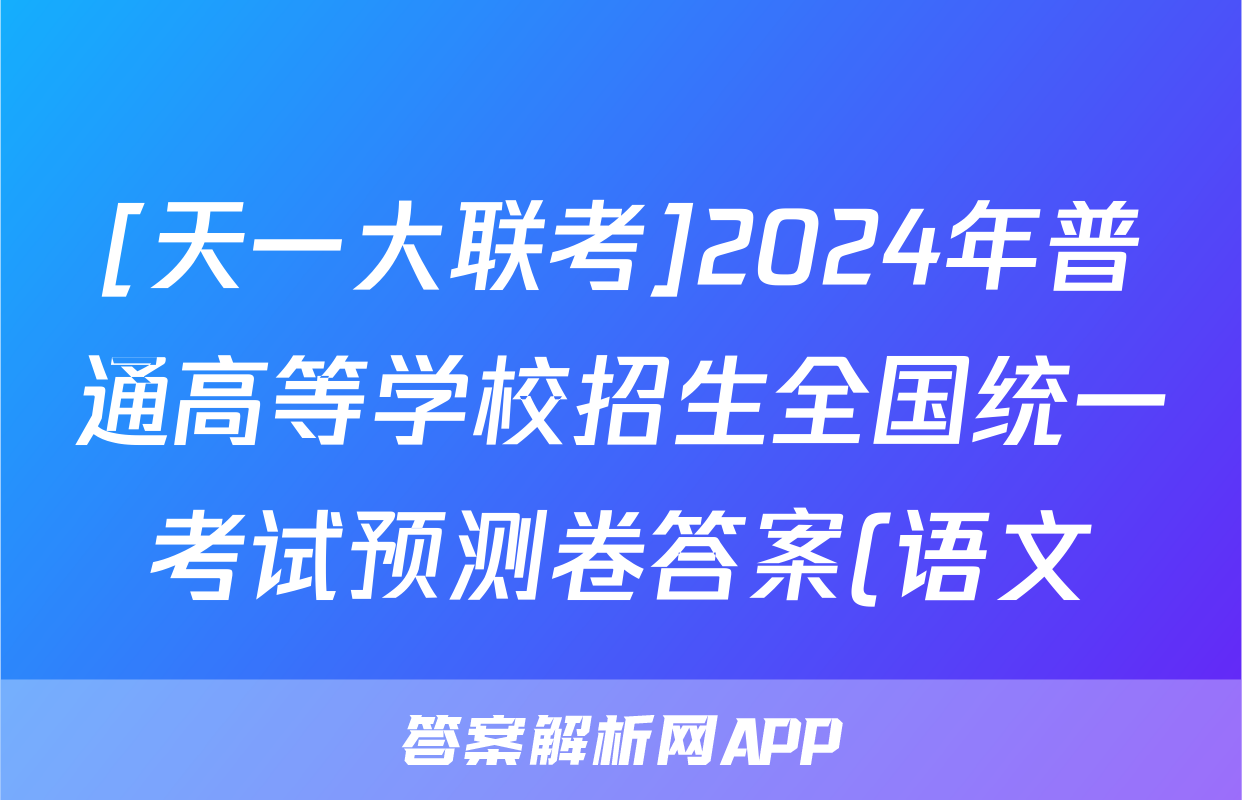 [天一大联考]2024年普通高等学校招生全国统一考试预测卷答案(语文),目前2024卷临天下答案网已经汇总了[天一大联考]2024年普通高等学校招生全国统一考试预测卷答案(语文)的各科答案和试卷,获取更多{{papers_name}}答案解析,请在关注本站。