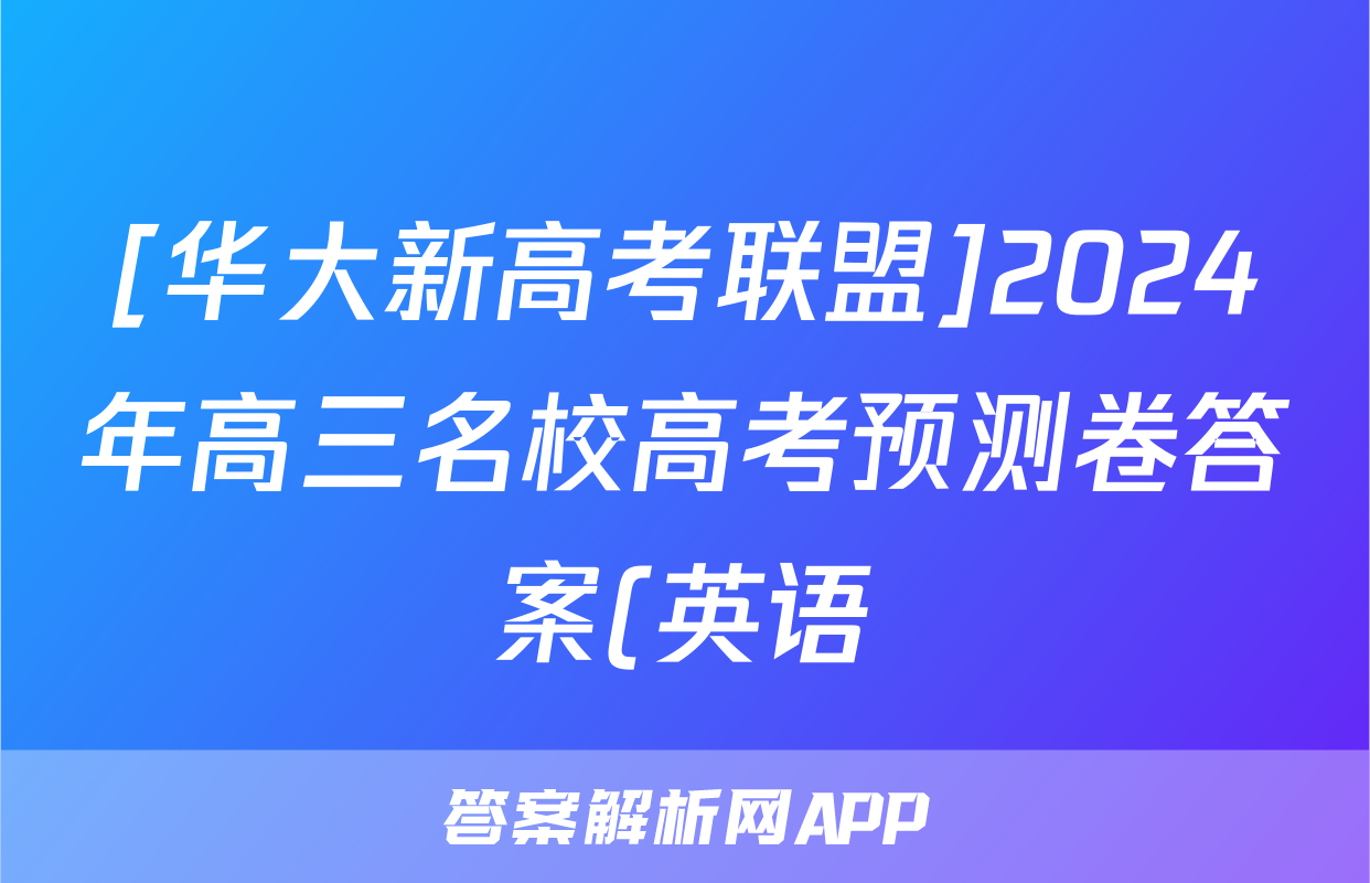 [华大新高考联盟]2024年高三名校高考预测卷答案(英语),目前2024卷临天下答案网已经汇总了[华大新高考联盟]2024年高三名校高考预测卷答案(英语)的各科答案和试卷,获取更多{{papers_name}}答案解析,请在关注本站。