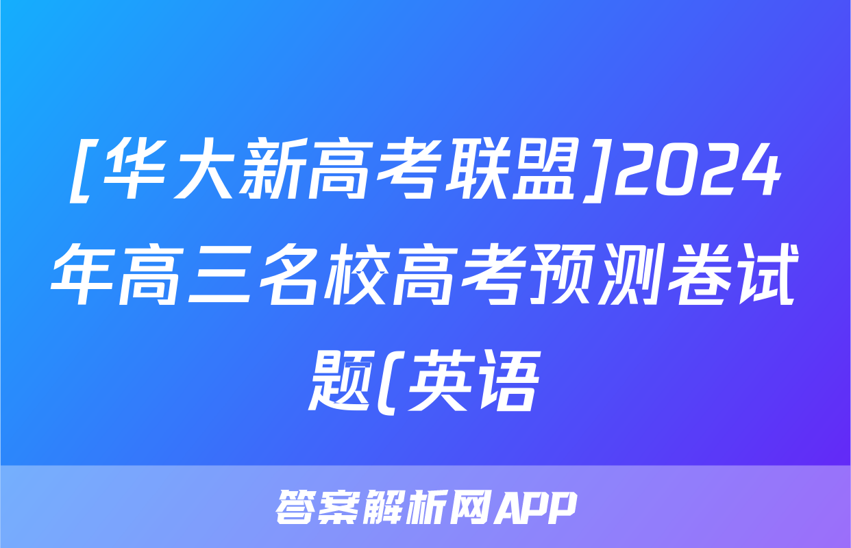 [华大新高考联盟]2024年高三名校高考预测卷试题(英语),目前2024卷临天下答案网已经汇总了[华大新高考联盟]2024年高三名校高考预测卷试题(英语)的各科答案和试卷,获取更多{{papers_name}}答案解析,请在关注本站。