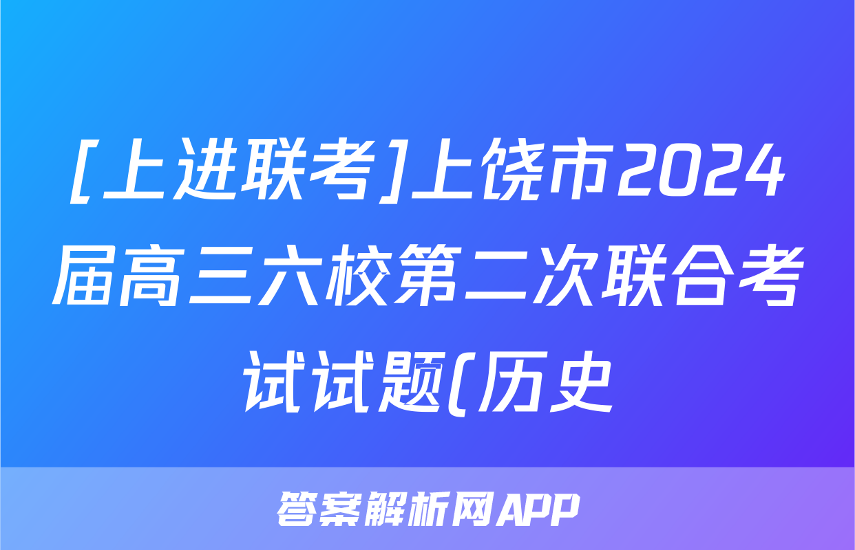 [上进联考]上饶市2024届高三六校第二次联合考试试题(历史),目前2024卷临天下答案网已经汇总了[上进联考]上饶市2024届高三六校第二次联合考试试题(历史)的各科答案和试卷,获取更多{{papers_name}}答案解析,请在关注本站。