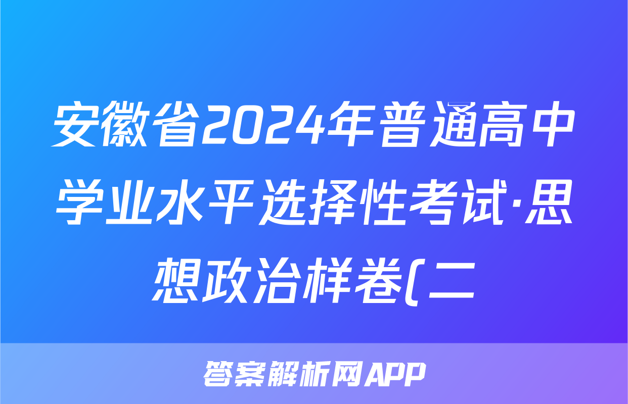 安徽省2024年普通高中学业水平选择性考试·思想政治样卷(二)2[24·(新高考)高考样卷·思想政治·AH]试题,目前2024卷临天下答案网已经汇总了安徽省2024年普通高中学业水平选择性考试·思想政治样卷(二)2[24·(新高考)高考样卷·思想政治·AH]试题的各科答案和试卷,获取更多{{papers_name}}答案解析,请在关注本站。