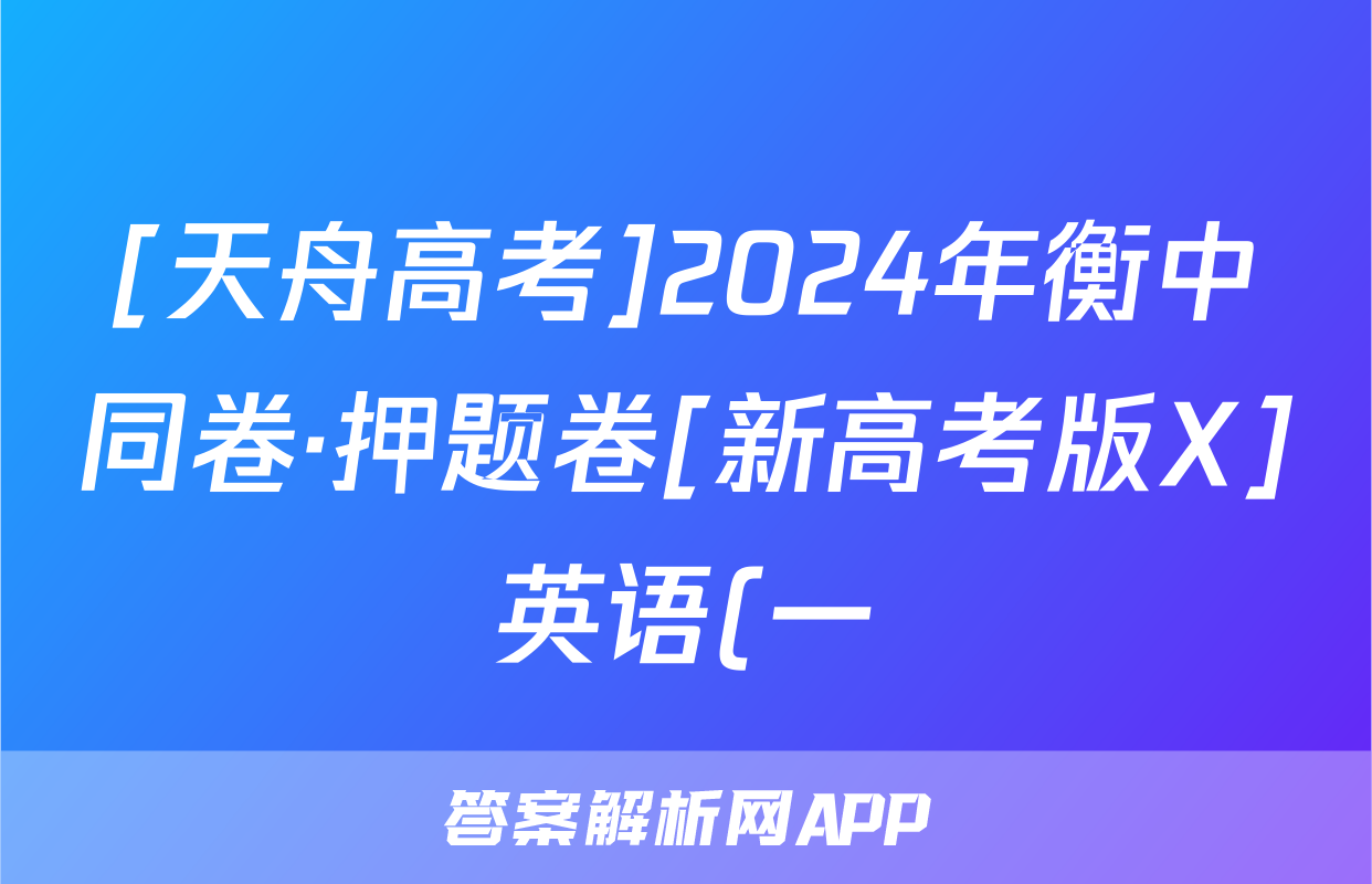 [天舟高考]2024年衡中同卷·押题卷[新高考版X]英语(一)1答案,目前2024卷临天下答案网已经汇总了[天舟高考]2024年衡中同卷·押题卷[新高考版X]英语(一)1答案的各科答案和试卷,获取更多{{papers_name}}答案解析,请在关注本站。