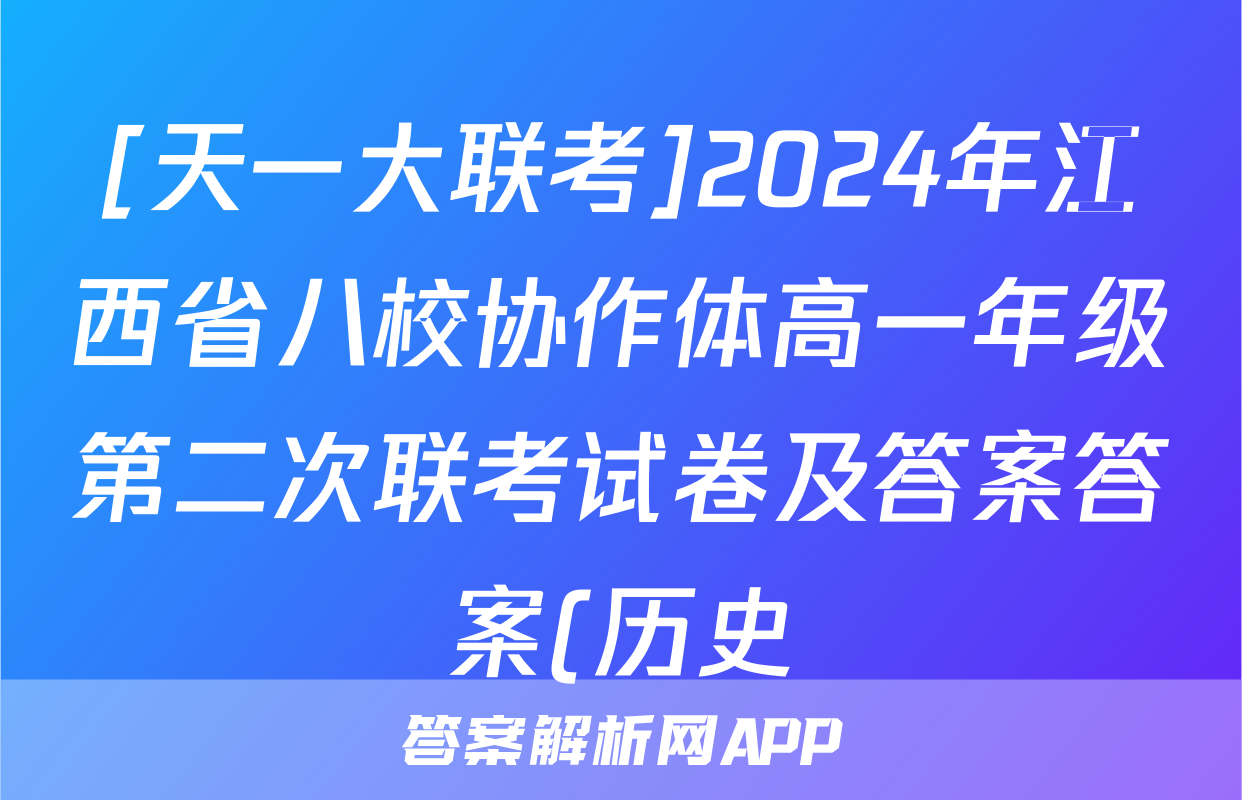 [天一大联考]2024年江西省八校协作体高一年级第二次联考试卷及答案答案(历史),目前2024卷临天下答案网已经汇总了[天一大联考]2024年江西省八校协作体高一年级第二次联考试卷及答案答案(历史)的各科答案和试卷,获取更多{{papers_name}}答案解析,请在关注本站。