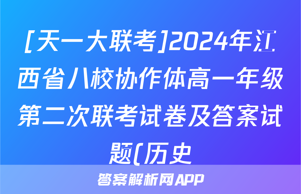 1、[天一大联考]2024年江西省八校协作体高一年级第二次联考试卷及答案答案(历史)