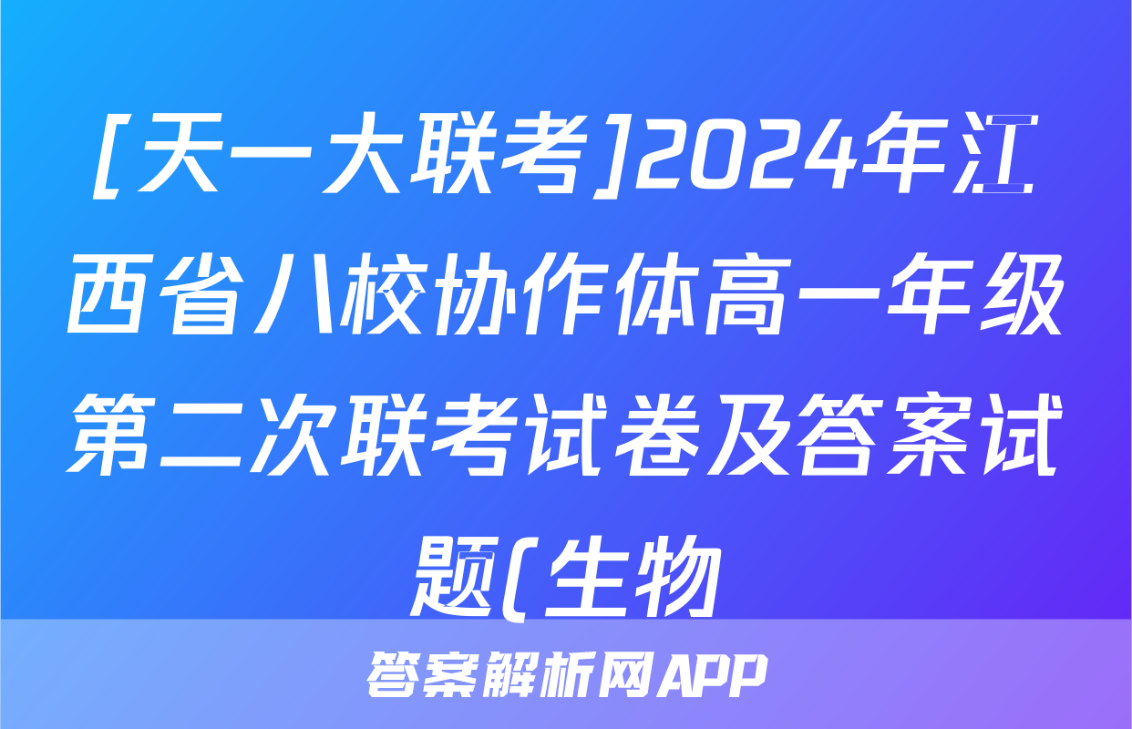 [天一大联考]2024年江西省八校协作体高一年级第二次联考试卷及答案试题(生物),目前2024卷临天下答案网已经汇总了[天一大联考]2024年江西省八校协作体高一年级第二次联考试卷及答案试题(生物)的各科答案和试卷,获取更多{{papers_name}}答案解析,请在关注本站。