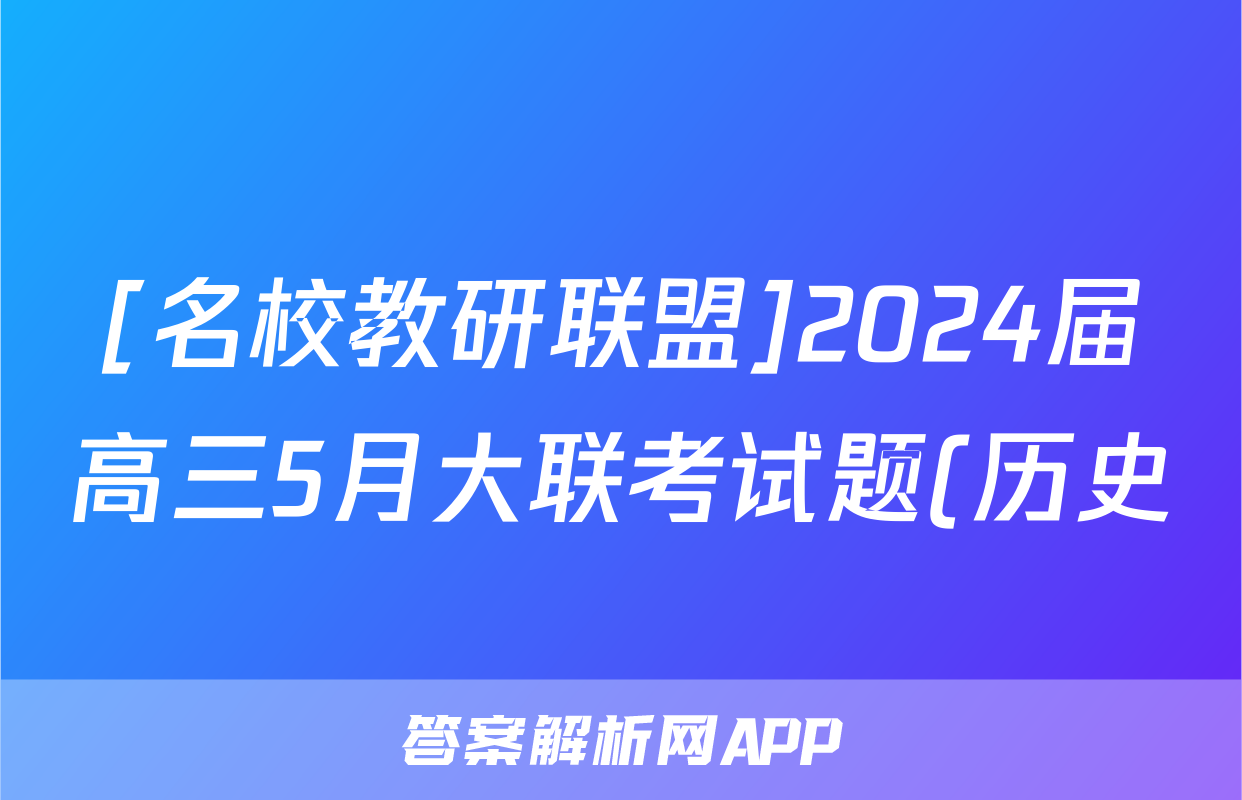 [名校教研联盟]2024届高三5月大联考试题(历史),目前2024卷临天下答案网已经汇总了[名校教研联盟]2024届高三5月大联考试题(历史)的各科答案和试卷,获取更多{{papers_name}}答案解析,请在关注本站。