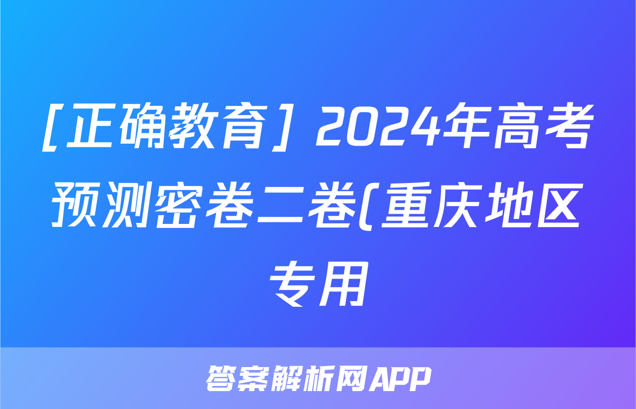 4、[正确教育] 2024年高考预测密卷二卷(重庆地区专用)地理答案
