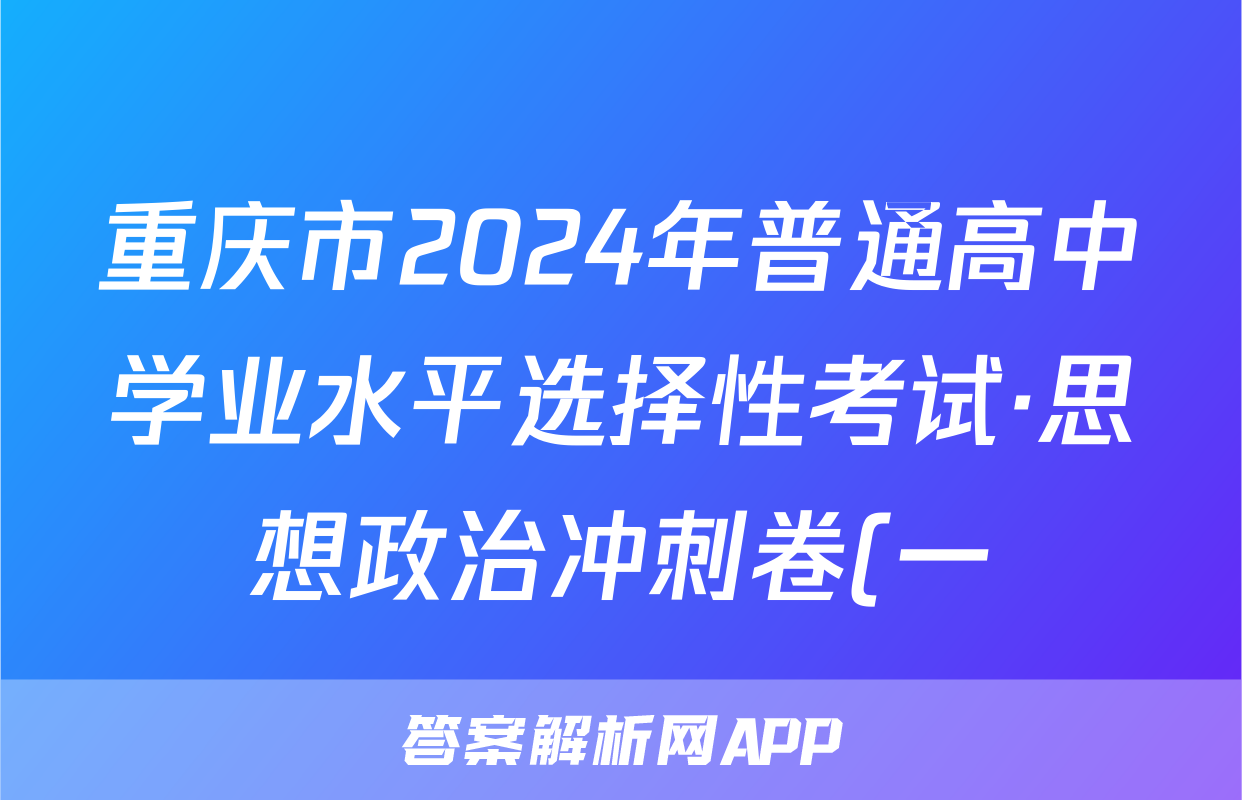 重庆市2024年普通高中学业水平选择性考试·思想政治冲刺卷(一)1[24·(新高考)CCJ·思想政治·CQ]答案,目前2024卷临天下答案网已经汇总了重庆市2024年普通高中学业水平选择性考试·思想政治冲刺卷(一)1[24·(新高考)CCJ·思想政治·CQ]答案的各科答案和试卷,获取更多{{papers_name}}答案解析,请在关注本站。