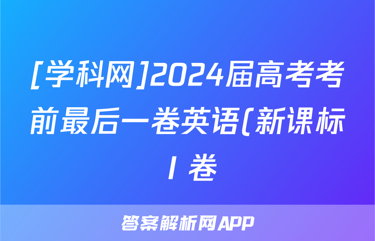 [学科网]2024届高考考前最后一卷英语(新课标Ⅰ卷)(广东专用)试题,目前2024卷临天下答案网已经汇总了[学科网]2024届高考考前最后一卷英语(新课标Ⅰ卷)(广东专用)试题的各科答案和试卷,获取更多{{papers_name}}答案解析,请在关注本站。
