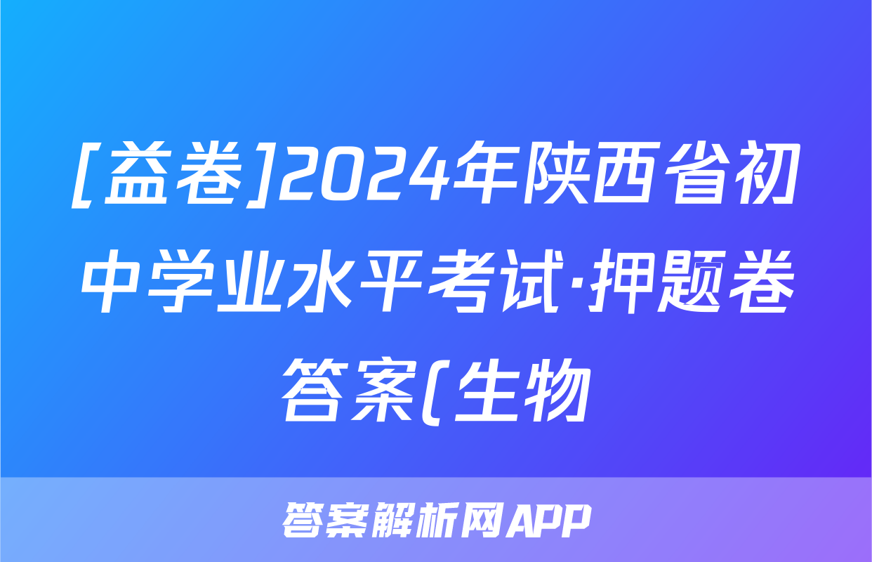 [益卷]2024年陕西省初中学业水平考试·押题卷答案(生物),目前2024卷临天下答案网已经汇总了[益卷]2024年陕西省初中学业水平考试·押题卷答案(生物)的各科答案和试卷,获取更多{{papers_name}}答案解析,请在关注本站。