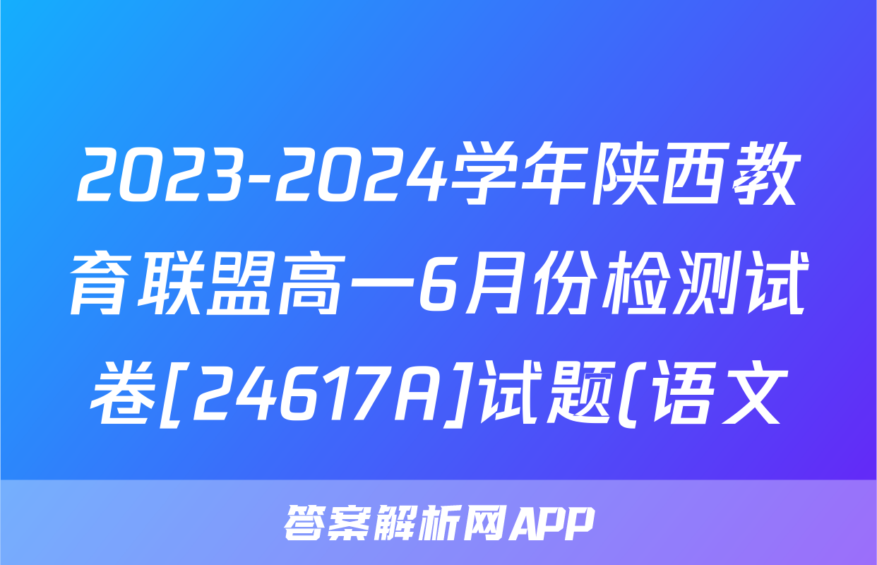 2023-2024学年陕西教育联盟高一6月份检测试卷[24617A]试题(语文),目前2024卷临天下答案网已经汇总了2023-2024学年陕西教育联盟高一6月份检测试卷[24617A]试题(语文)的各科答案和试卷,获取更多{{papers_name}}答案解析,请在关注本站。