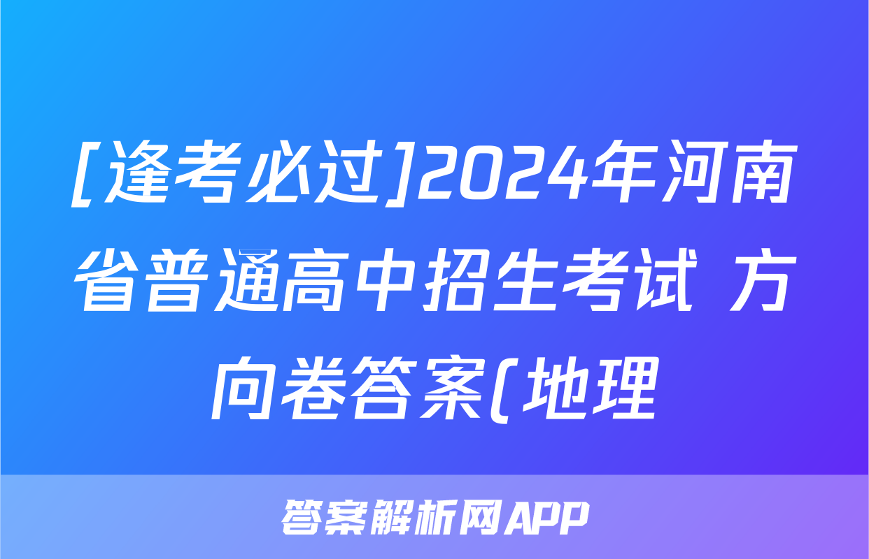 [逢考必过]2024年河南省普通高中招生考试 方向卷答案(地理),目前2024卷临天下答案网已经汇总了[逢考必过]2024年河南省普通高中招生考试 方向卷答案(地理)的各科答案和试卷,获取更多{{papers_name}}答案解析,请在关注本站。