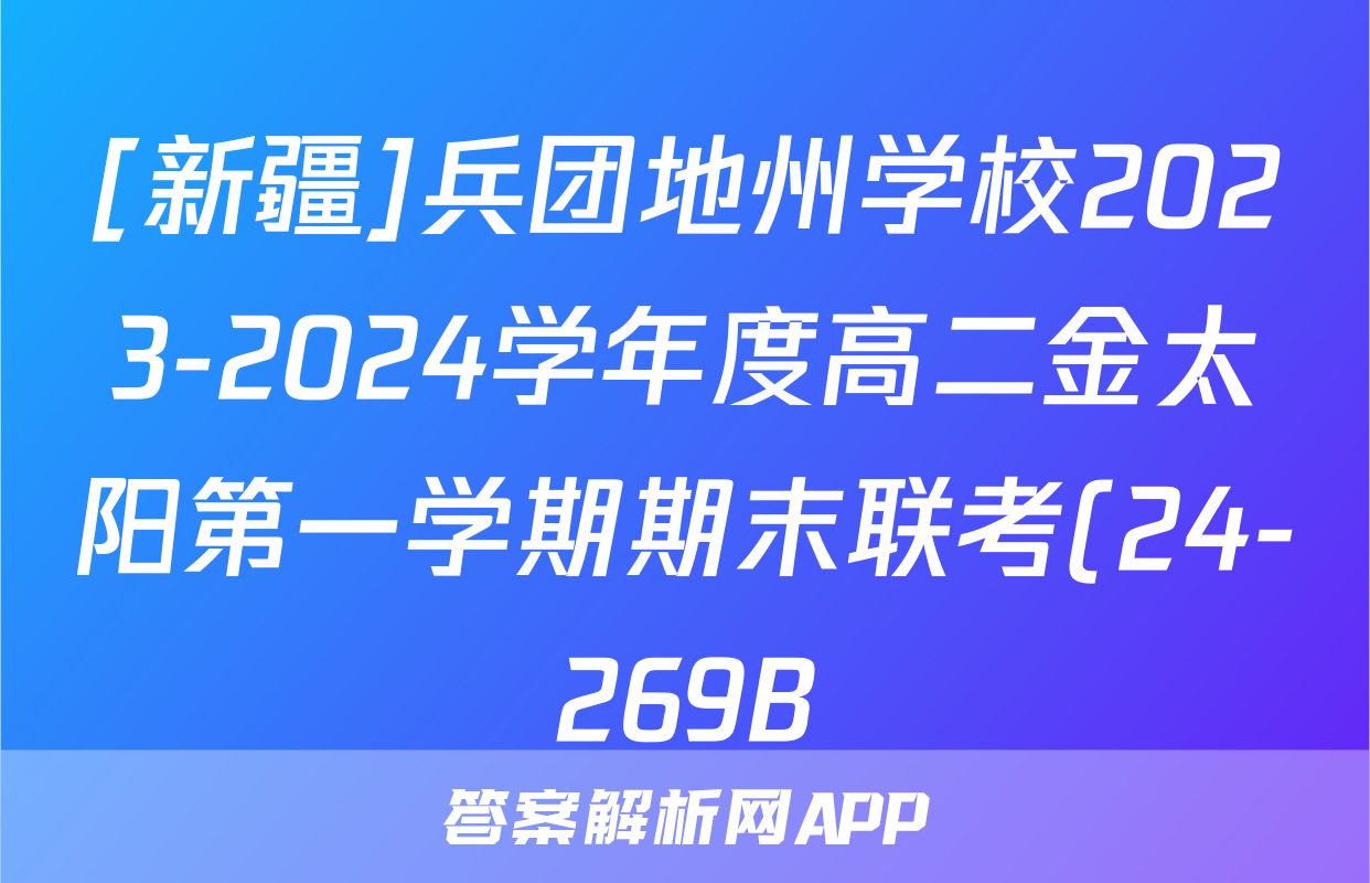 [新疆]兵团地州学校2023-2024学年度高二金太阳第一学期期末联考(24-269B)地理答案,目前2024卷临天下答案网已经汇总了[新疆]兵团地州学校2023-2024学年度高二金太阳第一学期期末联考(24-269B)地理答案的各科答案和试卷,获取更多{{papers_name}}答案解析,请在关注本站。